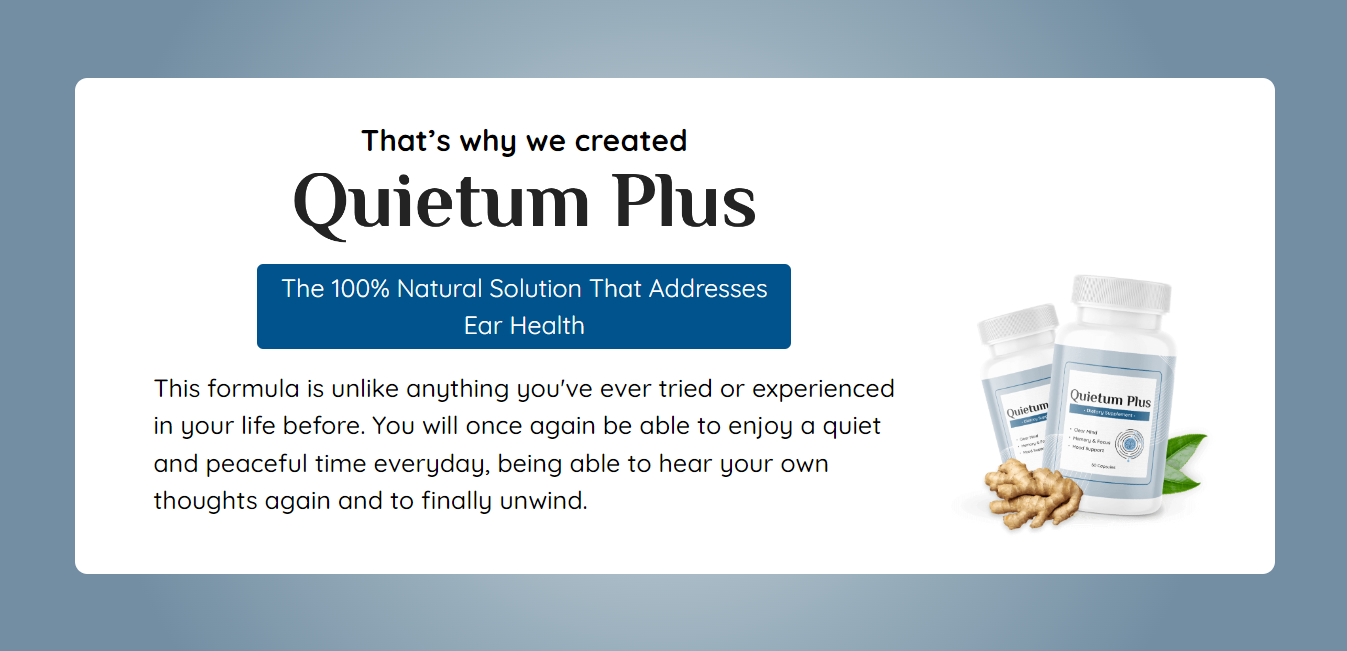 The ingredients in Quietum Plus are supported by several dozen studies, and combine powerful plants with modern medicine and technology. They have already made a positive impact on numerous people from all over the world. We’ve seen first-hand how much they can help in supporting a healthy hearing. While we cannot guarantee specific outcomes, we believe these products can address your ear health, as well as your brain health.